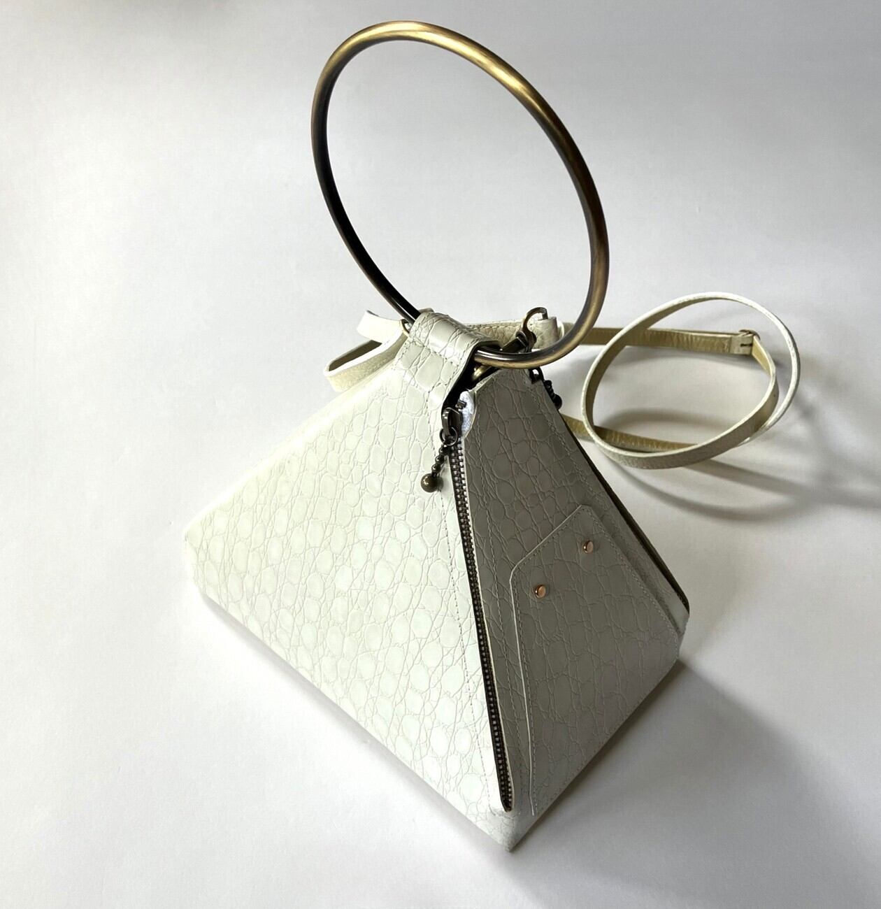 Real Leather Triangle bag #White