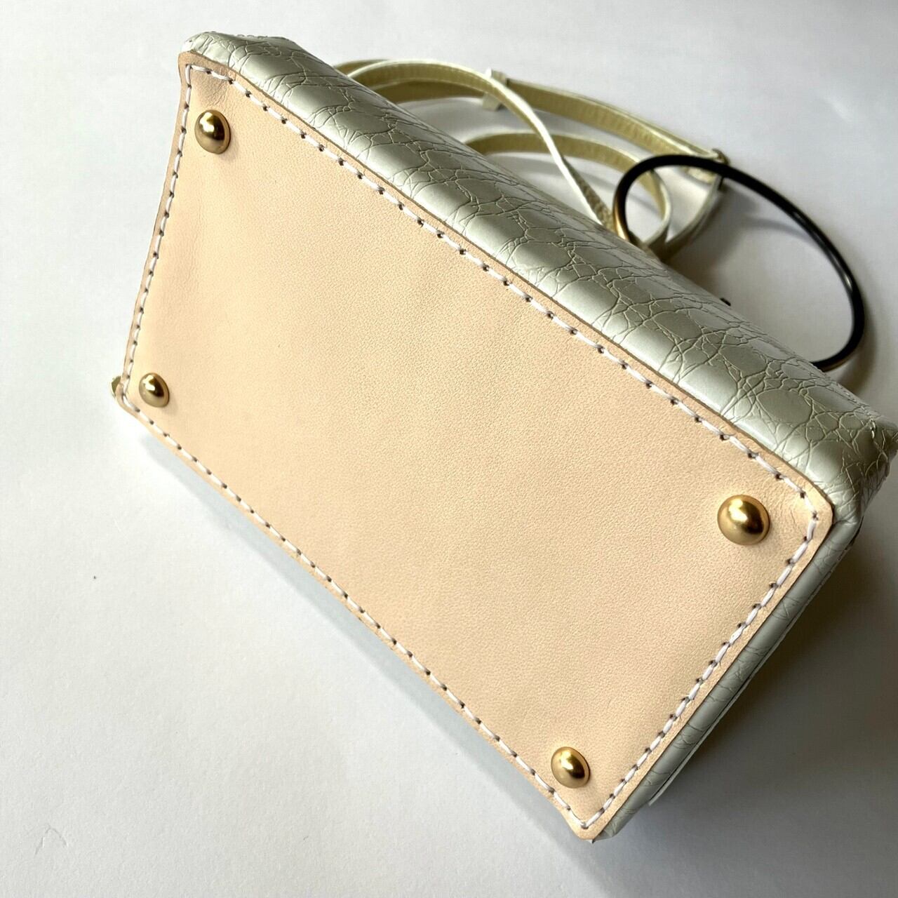 手縫いステッチが特徴の本革バッグです。
