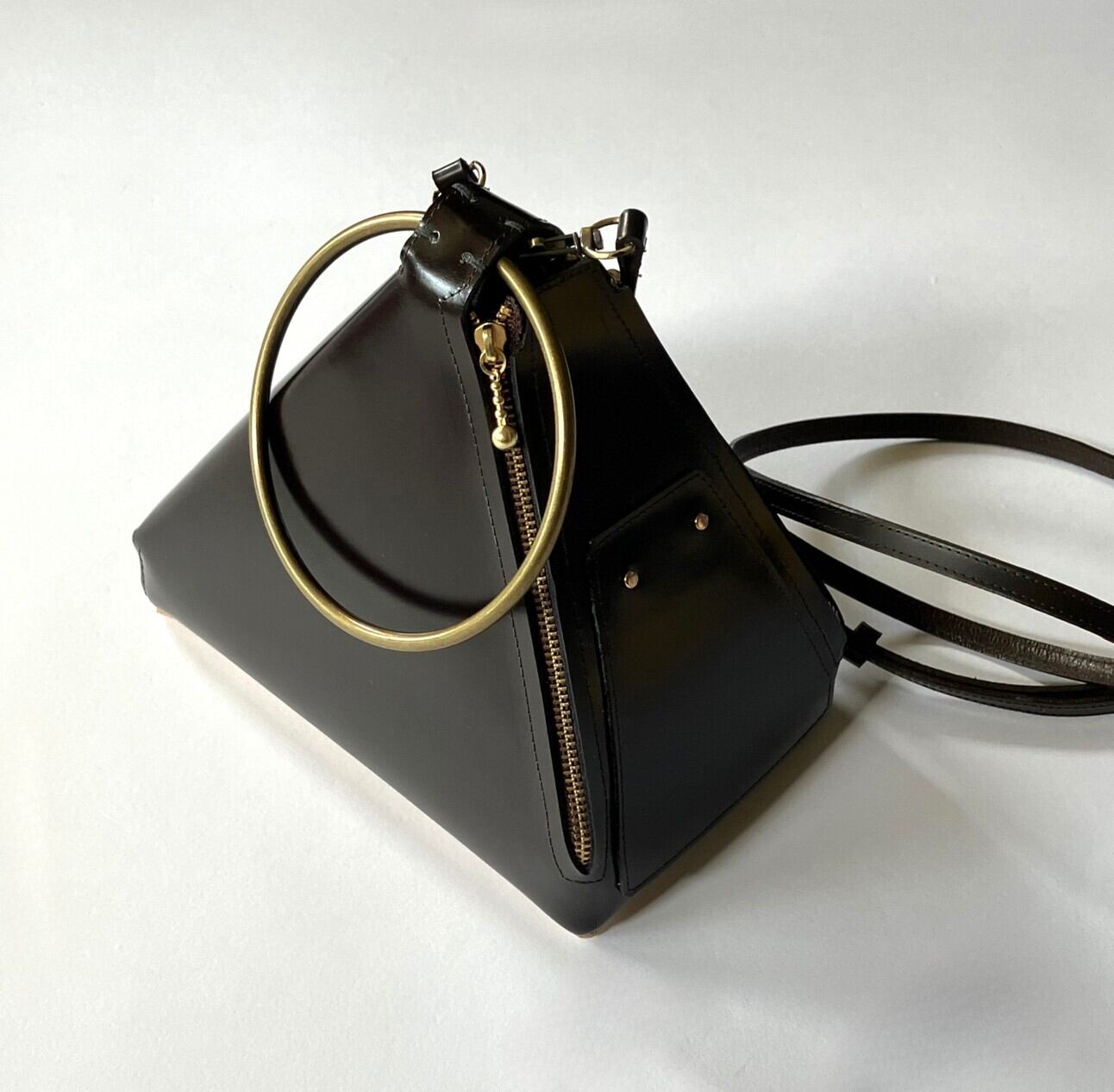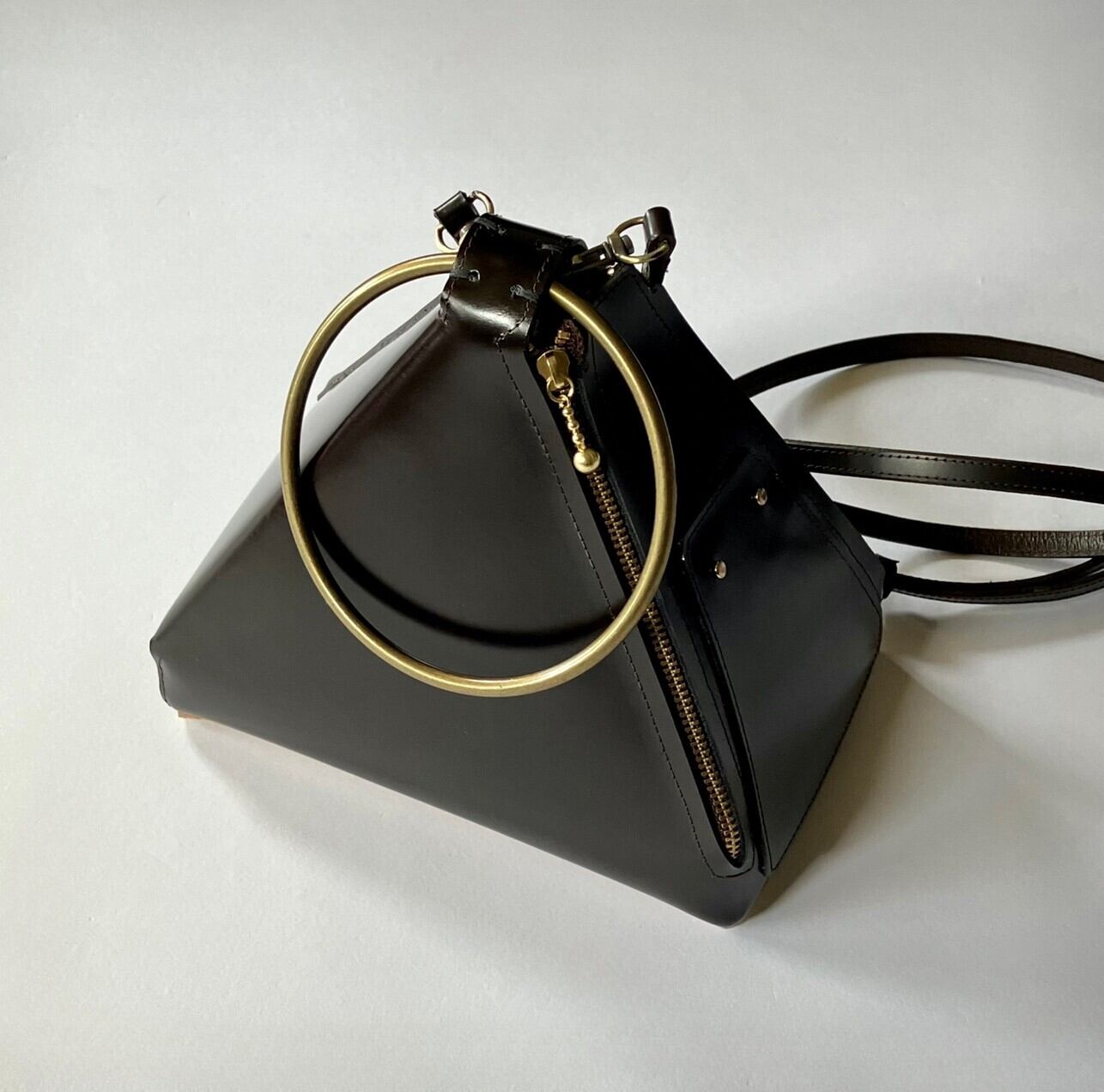 Real Leather Triangle bag (Dark Brown)