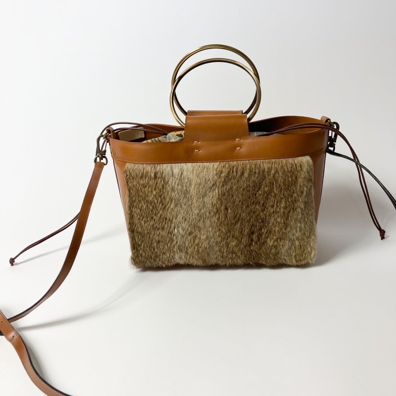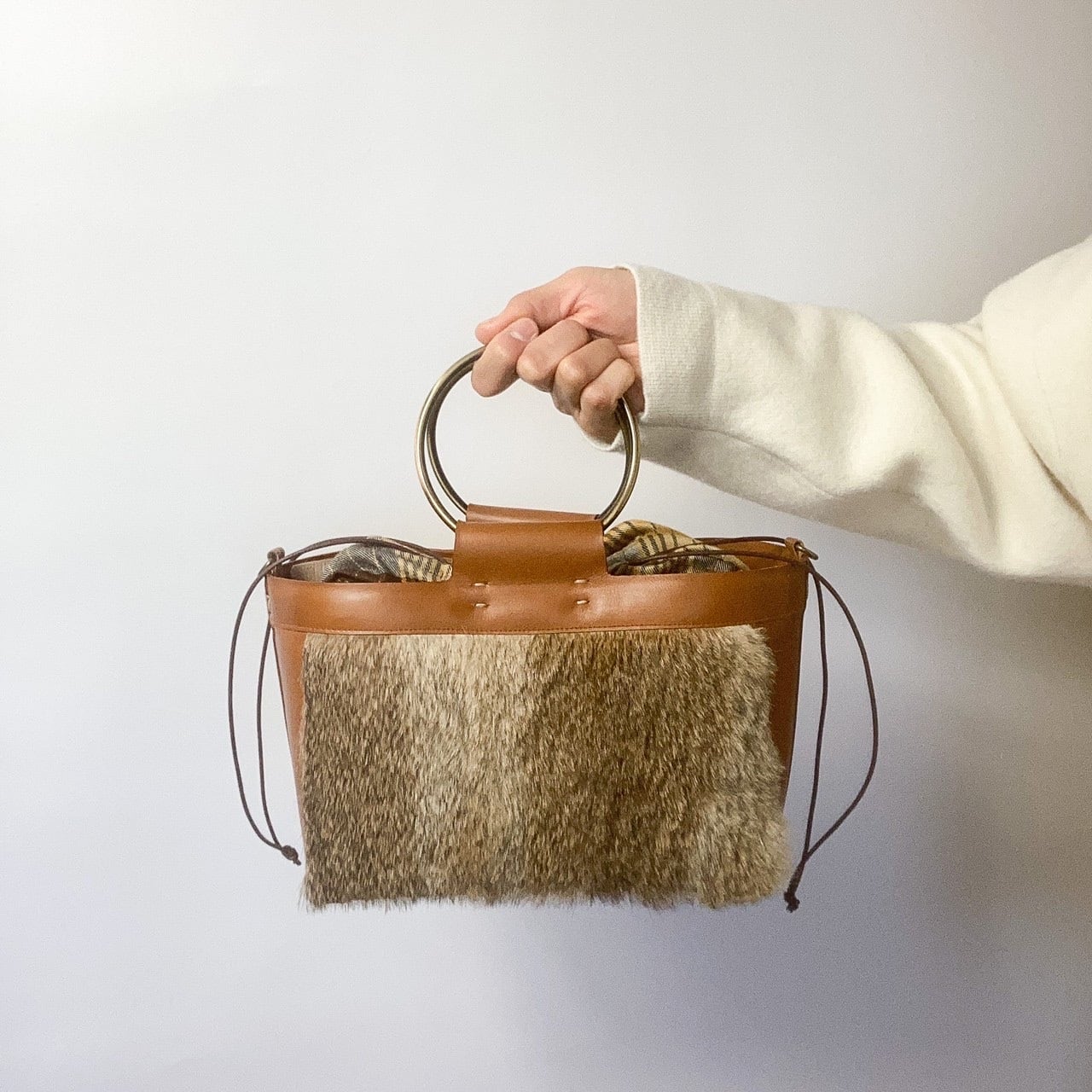 柔らかく質感の良いヘアカーフに上質なラビットファーを前面にまとわせたリングバッグです!おしゃれなスポットにお出かけしてみてはいかがでしょう?プレゼントにもオススメです♫