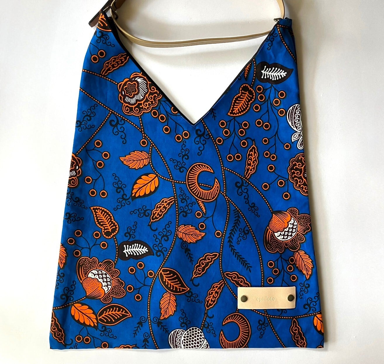 落ち着きがありながらも華やかで品のあるアフリカンプリントとゴートヌメ革を使用したバッグです。