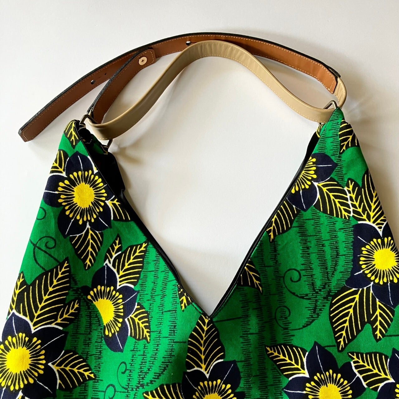 落ち着きがありながらも華やかで品のあるアフリカンプリントとゴートヌメ革を使用したバッグです。